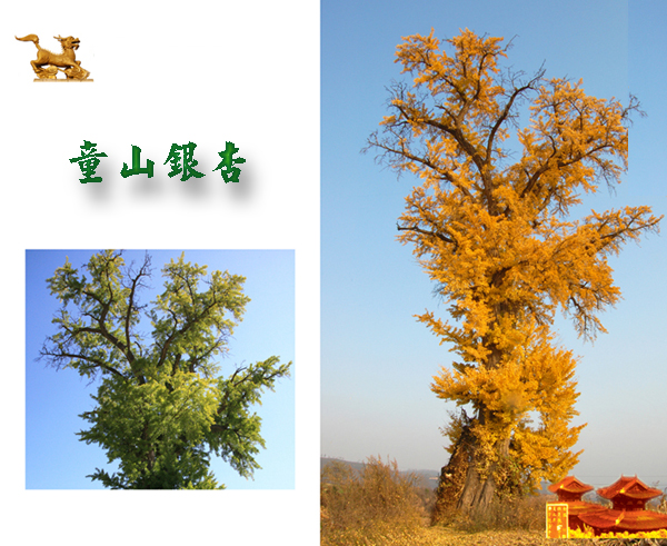 童山(旧县城)有珍稀古树银杏两株。一株在城隍庙院,挺拔而上,高29米,胸径周长2.74米,胸直径0.93米。一株在兴国寺,粗大而曲,高23米,胸径周长5.65米,胸直径1.8米。据考,盖千年之物,今仍枝叶茂密,尚抽新枝,叶如扇形,繁而无隙,深秋果实累累,叶色转黄,直托碧霄,慎观之,如景泰兰之绘金花,灿灿闪光。当地群众有“麟游两株银杏树,把天摩的咯吱吱”之说,传为景观。