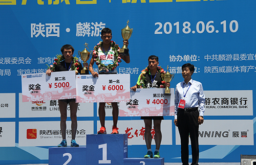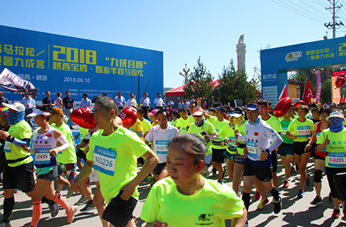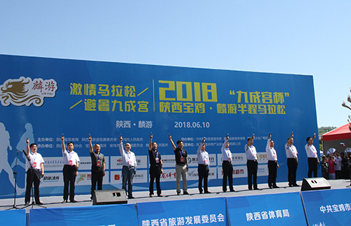 (本网讯)6月10日上午10时,随着一声枪响,2018“九成宫杯”陕西宝鸡·麟游半程马拉松赛在我县激情开跑,来自河北、湖南、广东等14个省、市的2500余名运动员和马拉松爱好者在这里展开了激烈角逐。省体育局副局长董利、省旅游发展委员会副主任陈梦榆、市人大常委会副主任刘焕勋、副市长武军、市政协副主席王虎贤、省体育局群体处处长杨文、省田管中心副主任崔彦飞、市政府副秘书长周保君、市体育局局长任小康、市旅游发展委员会主任陈小平、县委书记孙敬虎、县长李武发出席开幕式,并为获奖选手颁奖。
