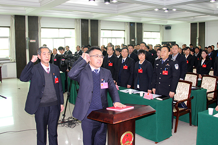 新当选的县监察委员会主任、县人大常委会常务委员会委员向宪法宣誓。