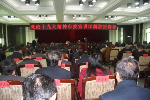 11月15日上午,党的十九大精神市委宣讲团宣讲报告会在麟游举行。市委宣讲团成员、市国资委党委书记、主任杨旺余作专题辅导报告。县委常委、宣传部长李力主持报告会。