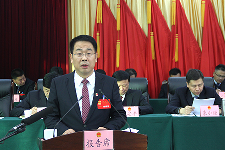 县长李武发代表县人民政府向大会作工作报告。李武发说,2017年,在县委的正确领导下,在县人大、县政协的监督支持下,县人民政府团结带领全县人民,以脱贫攻坚为统揽,坚持追赶超越主基调,凝心聚力,务实苦干,圆满完成了县十七届人大一次会议确定的目标任务。全年预计实现生产总值80.35亿元,同比增长13%;完成固定资产投资215亿元,增长20%;实现财政总收入9.3亿元,增长74.7%,其中地方财政收入3.3亿元,增长47.3%;实施重点项目100个,完成投资121.2亿元;新签约招商引资项目36个,实现到位资金59.3亿元,利用外资150万美元;争取项目资金15.2亿元;完成社会消费品零售总额7.6亿元,增长13.2%;城乡居民人均可支配收入分别达到29293元、8907元,增长8.6%和9.2%。一年来,以11个贫困村和4664名贫困人口脱贫出列为标志,脱贫攻坚取得新成效。以规模以上工业增加值突破60亿元为标志,工业经济发展迈上新台阶。以全域旅游启动实施和革命老区县获批命名为标志,第三产业实现新突破。以南坊新城开发建设为标志,城乡面貌发生新变化。以市级教育现代化先进县成功创建为标志,社会事业取得新进步。以“放管服”改革纵深推进为标志,政府自身建设得到新加强。